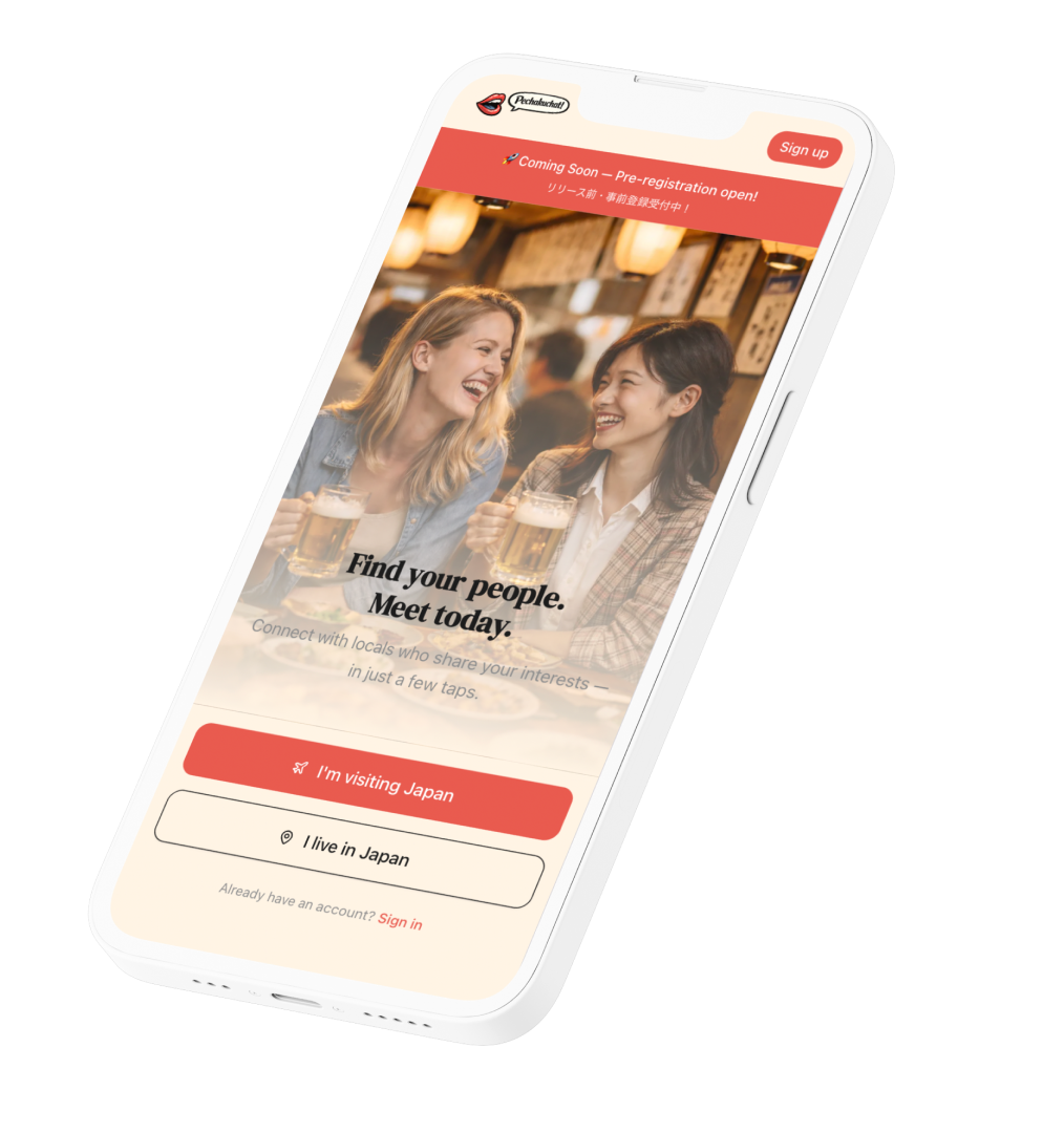 Pechakuchatは、訪日旅行者と日本にいるローカルが、旅先で「安心して」1対1の交流ができるサービスです。